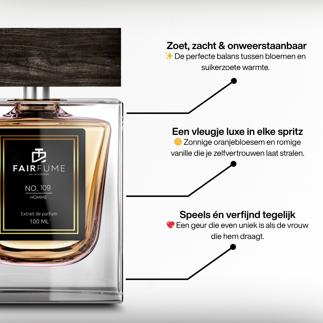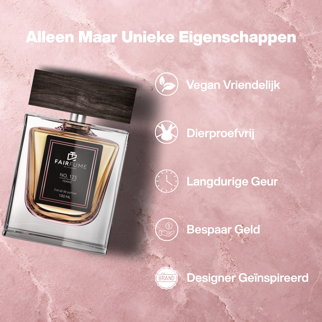 Onze geuren zijn enkel geïnspireerd op deze creaties en zijn niet identiek aan enig ander parfum of origineel. Fairfume mag niet worden verward met de originele merken en heeft geen enkele band met de fabrikanten van de genoemde of niet-genoemde designermerken.